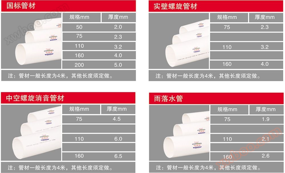 PVC-U排水管は技術的に成熟した排水管シリーズ製品であり、国内外で広く応用されている。製品は鋳鉄管が比較的に長い寿命、耐食性などの利点がない、施工上、より軽量で運搬・設置及び接続が簡単であるなどの特徴があり、民間建築の排水・汚染物質排出、化学工業排水・汚染物質排出、雨水排出などの分野に広く応用され