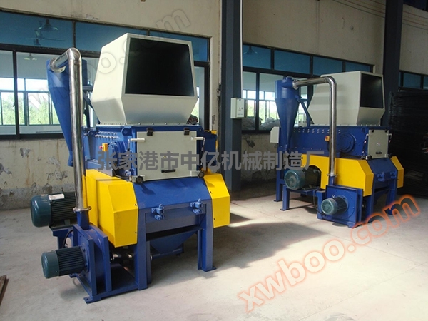 本機は主にプラスチック業界における各種厚肉廃棄日材、木材端材及び管材料の破砕回収に用いられる。