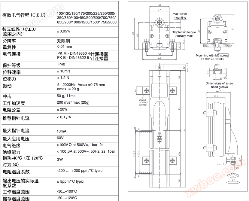 Gスライダ式電子尺PKシリーズセンサーレンジ0-50から5000 mmストローク、M 6ねじ機械接続を利用して、独立線形は±0.05%に達し、繰り返し性は0.01 mm、無限分解能、理論電気ストロークを超えて電気信号の変化がない。